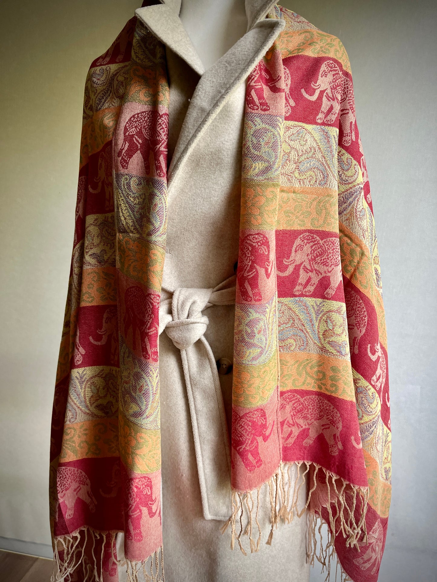 Añadir Pashmina Elefantes Rojo Carmín, Azul, Beige y Marrón al carrito