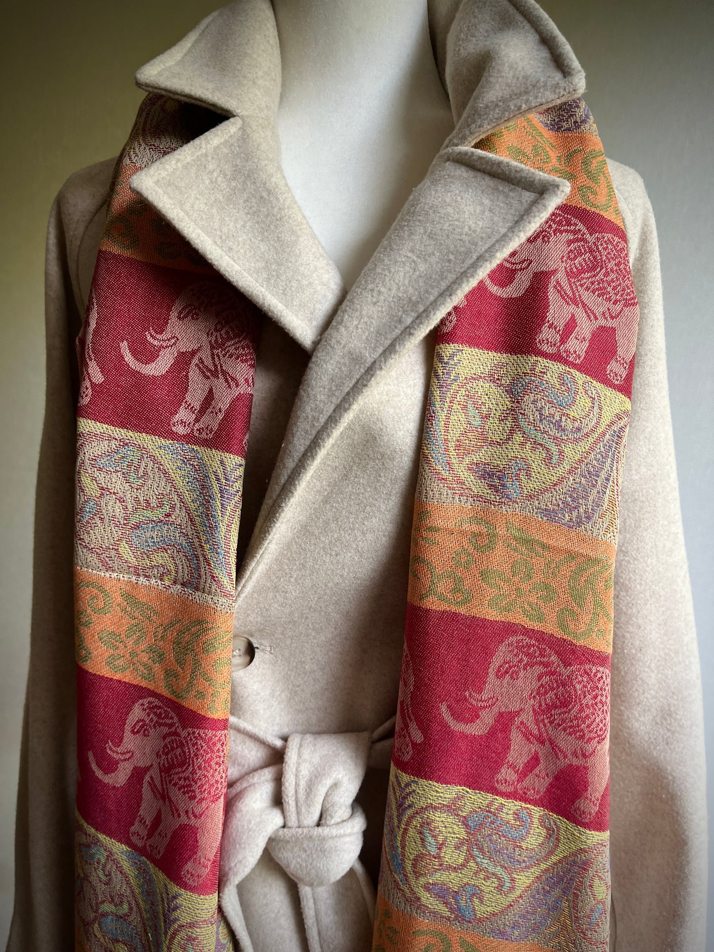 Añadir Pashmina diseño elefantes rojo, beige y camel al carrito