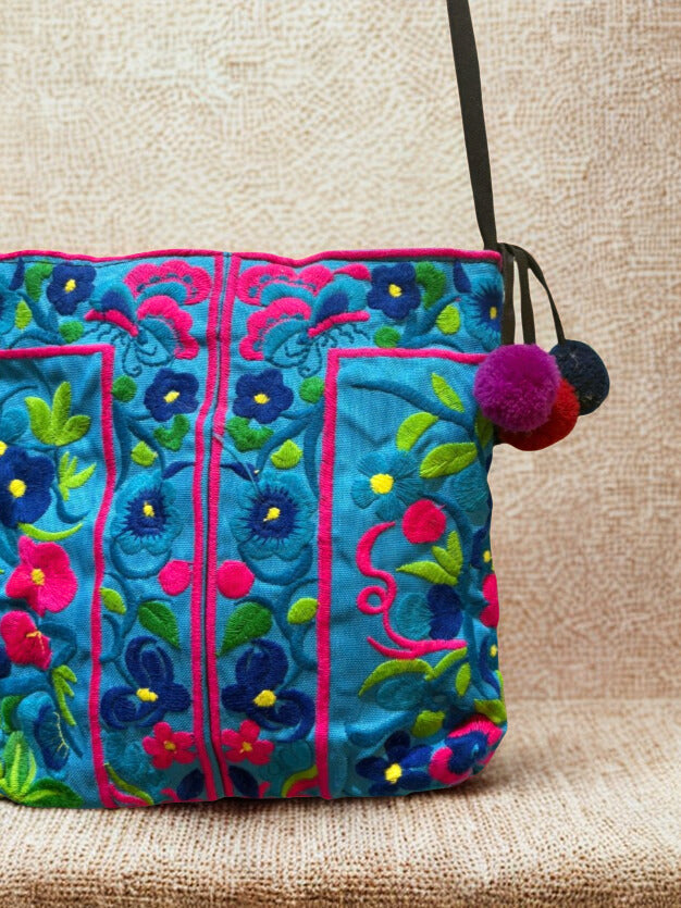 Añadir Bolso bandolera bordada turquesa con borlas al carrito