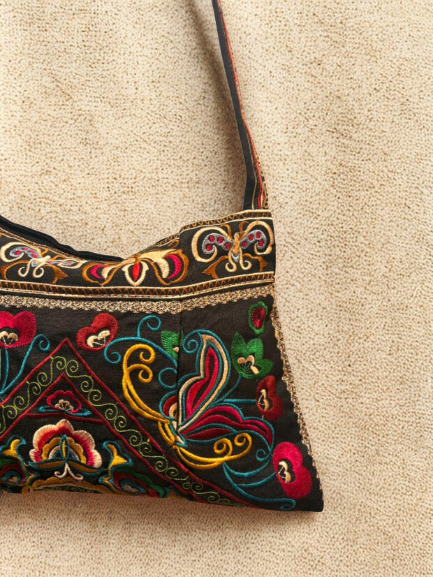 Añadir Bolso bandolera bordado negro multicolor al carrito