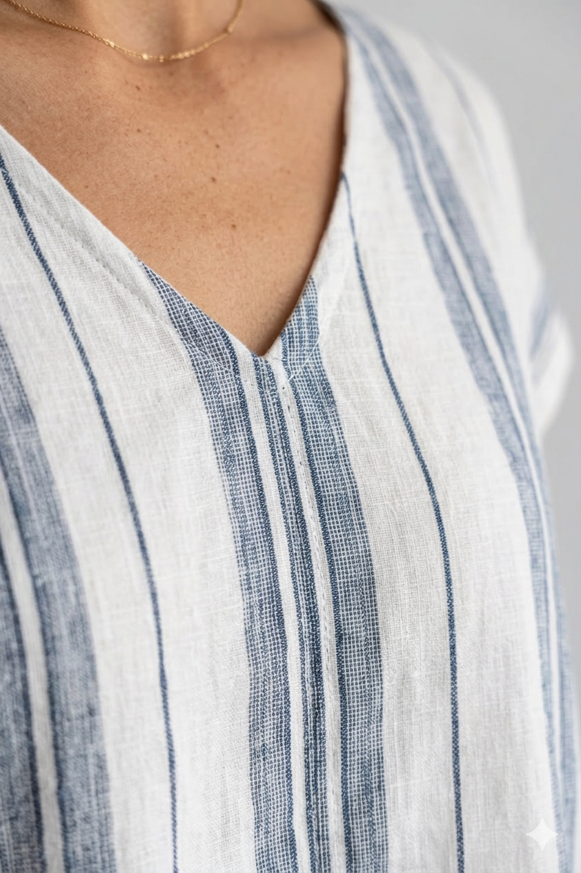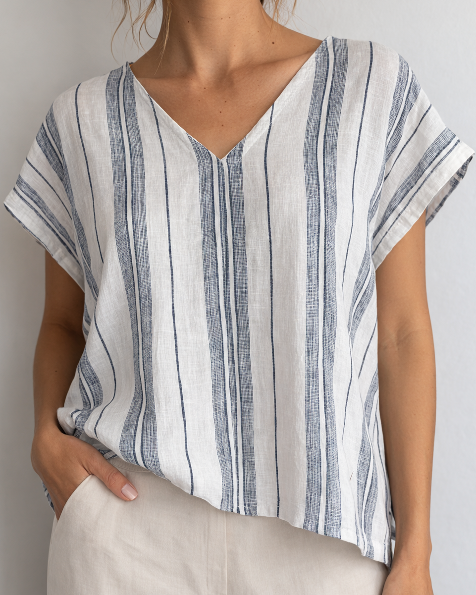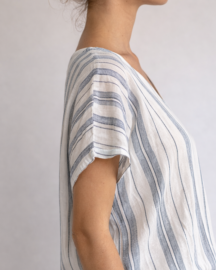 Top algodón y lino rayas blanco y gris