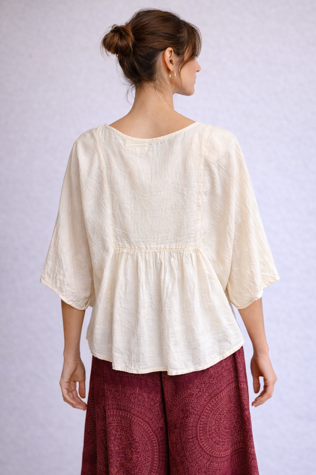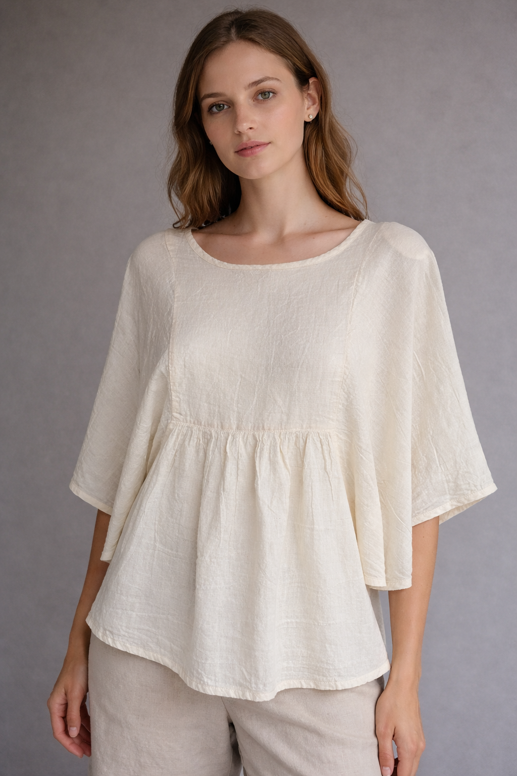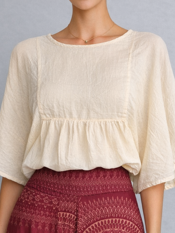 Top beige de mangas estilo japonesa fruncido