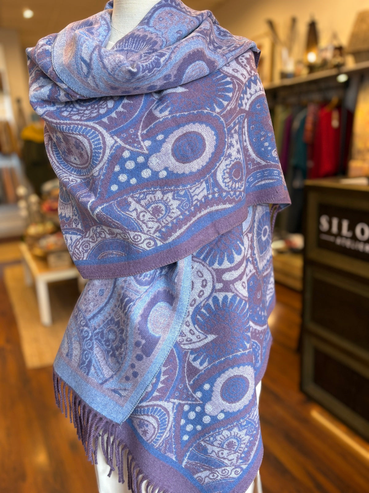 Bufanda pasley en morado, azul y lavanda